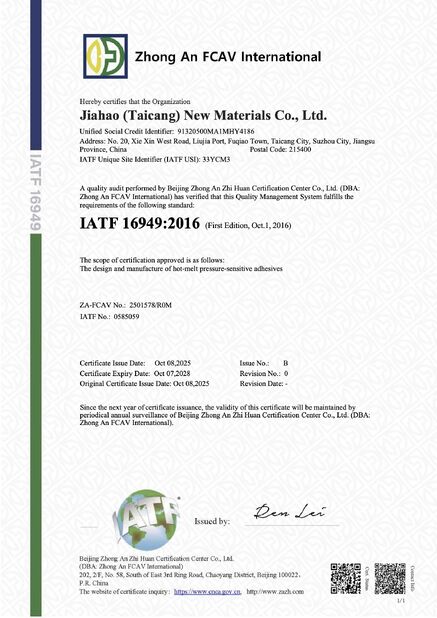 Standart:IATF 16949:2016 Sayı:0585059 Düzenleme tarihi:2025-10-08 Son kullanma tarihi:2028-10-07